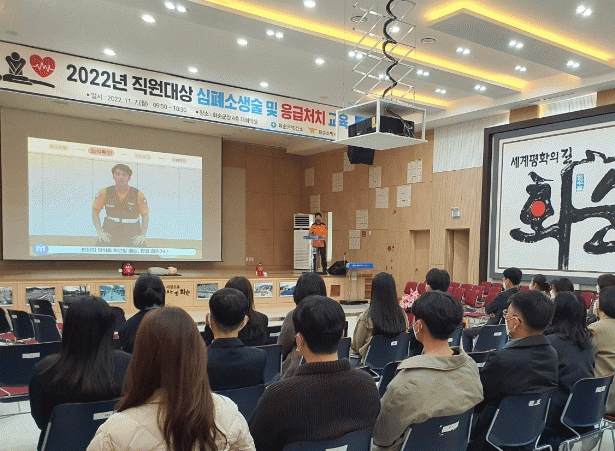 ȼø¼Ò¹æ¼ ÀÌÀç¿õ ¼Ò¹æÀåÀ» ÃʺùÇØ ¡ãÀÀ±ÞȯÀÚ ¹ß»ý ½Ã ½Å°í ¹æ¹ý°ú ÀýÂ÷ ¡ã»ýȰ ¼Ó ÀÀ±Þóġ ¡ã½ÉÆó¼Ò»ý¼ú°ú ÀÚµ¿½ÉÀåÃæ°Ý±â(AED) ÀÛµ¿¹ý µî À̷аú ½Ç½ÀÀ» º´ÇàÇØ ÁøÇàÇß´Ù.