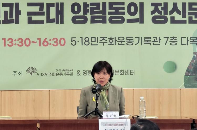 ¼Û±âÈñ ±³¼öÀÇ »çȸ·Î ÁøÇàµÈ 1ºÎ¿¡¼´Â ¡®±Ù´ë ¾ç¸²ÀÇ ¿µ¼º°ú ±¤ÁÖ Á¤½Å¡¯À̶ó´Â ÁÖÁ¦·Î ±èÁ¾Çå ¾ç¸²±Ù´ë¿ª»ç¹®È¼¾ÅÍÀå°ú Á¶ÇÑ»ó È£³²½ÅÇдëÇб³ ±³¼ö°¡ ¹ßÁ¦¸¦, ¡®±Ù´ë ¾ç¸²ÀÇ ¿µ¼º ÀÚ¿ø°ú ±¤ÁÖ Á¤½ÅÀÇ ¹®È°ü±¤ Àü·«¡¯¿¡ ´ëÇØ ÀÌ¿µ¹Ì ÁýÇÕµµ½Ã ´ëÇ¥À̻簡 ¹ßÇ¥¸¦ Çß´Ù.