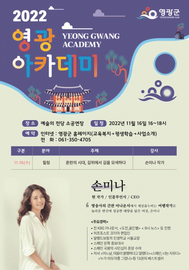 ¿µ±¤¾ÆÄ«µ¥¹Ì ½ÅûÀº ¿µ±¤±º ´ëǥȨÆäÀÌÁö(±³À°º¹Áö¡æ»ç¾÷¼Ò°³)¸¦ ÅëÇØ ½ÅûÇÒ ¼ö ÀÖÀ¸¸ç ±âŸ ¹®ÀÇ»çÇ×Àº ±º Ãѹ«°ú·Î ¹®ÀÇÇÏ¸é µÈ´Ù.