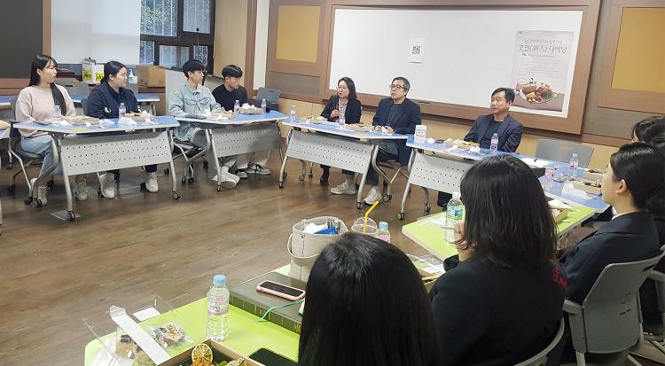 Çà»ç¿¡ Âü°¡ÇÑ ¼ö°»ýµéÀº ¡°°ÀǽÇÀÌ ¾Æ´Ñ ÀÚÀ¯·Î¿î ºÐÀ§±â¿¡¼ ´ã´ç ±³¼öµé°ú °ú¸ñ ³»¿ë ¹× ÀÚ½ÅÀÇ »î°ú »çȸ ¹®Á¦¿¡ °üÇØ ´ëÈÇÒ ¼ö ÀÖ´Â ÁÁÀº ±âȸ¿´´Ù¡±°í ¼Ò°¨À» ¹àÇû´Ù.