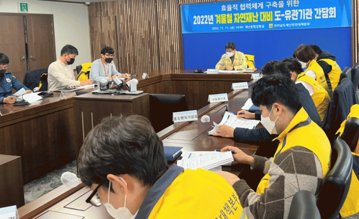 °£´ãȸ¿¡´Â µµ 13°³ Çù¾÷ºÎ¼¿Í Àü³²Áö¹æ°æÂûû, Çѱ¹µµ·Î°ø»ç, Çѱ¹Àü·Â°ø»ç µî 11°³ À¯°ü±â°ü °ü°èÀÚ°¡ Âü¼®Çß´Ù. À̵éÀº °Ü¿ïö ÀÚ¿¬Àç³ ´ëÃ¥±â°£ µµ¹Î ¾ÈÀüÀ» À§ÇÑ »óȲ°ü¸®Ã¼°è¸¦ À¯ÁöÇϰí, ÀçÇØ ¹ß»ý ½Ã ±â°üº° ¿ªÇÒ°ú »óÈ£ Çù¾÷¹æ¾ÈÀ» ³íÀÇÇß´Ù.