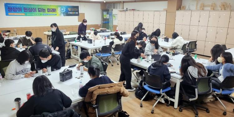 ±¤ÁÖ±¤¿ª½Ã±³À°Ã»ÀÇ 2022³â °í±³-´ëÇÐ ¿¬°è±³À°ÇÁ·Î±×·¥ÀÎ ¡®À¶ÇÕ ²Þ²Ù´Â °øÀÛ¼Ò¡¯ °ø¸ð¿¡ ¼±Á¤µÈ »ê¾÷µðÀÚÀÎÇаú´Â ±¤ÁÖ±¤¿ª½Ã °í±³»ý 22¸íÀ» ´ë»óÀ¸·Î ¿ÀÅ¿ø ±³¼ö°¡ ¡®³»¼Õ³»¸¸(³» ¼ÕÀ¸·Î ³»°¡ ¸¸µå´Â), ½Å¹ÚÇÑ ½º¶óº§ µðÀÚÀΠüÇ衯 ¼ö¾÷À» ÁøÇàÇÏ°í ±³À° ¼º°ú¹°À» °øÀ¯Çß´Ù.