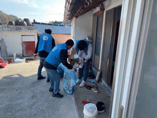 À̳¯ ºÀ»çÀÚµéÀº ¾à 3½Ã°£ °¡·® ¶¡À» È긮¸ç Áý ¾È °÷°÷¿¡ ½×ÀÎ ¹¬Àº ¾²·¹±â¸¦ ¼ö°ÅÇϰí û¼ÒÇÏ¸ç ¾î¸£½ÅÀÌ ´õ¿í ÄèÀûÇÑ È¯°æ¿¡¼ »ýȰÇÒ ¼ö ÀÖµµ·Ï ȯ°æÀ» °³¼±ÇÏ´Â µ¥ µµ¿òÀ» ÁÖ¾úÀ¸¸ç ºñ´©, ¼¼Á¦, ÈÀåÁö µî ÇÊ¿äÇÑ »ýȰ¿ëǰµµ Áö¿øÇß´Ù.