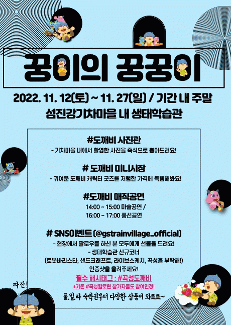 Áö±Ýµµ ¼¶Áø°¿¡¼´Â ¾î»ì ÈçÀûÀ» ã¾Æº¼ ¼ö ÀÖ´Ù. À̹ø À̺¥Æ®ÀÇ ÁÖÀΰøÀÎ ²áÀ̴ Ǫ¸¥ µ¹¿¡¼ ±ú¾î³ ´ëÀå µµ±úºñ¸¦ ij¸¯ÅÍÈ ÇÑ °ÍÀÌ´Ù. ¼¶Áø°±âÂ÷¸¶À» °ü°èÀÚ´Â ¡°´ëÀå µµ±úºñ ²áÀ̸¦ ºñ·ÔÇØ ¾Æ±âµµ±úºñ ûÀÌ¿Í È«À̱îÁöµµ±úºñ »ïÃÑ»ç ij¸¯Å͸¦ ³Î¸® ¾Ë¸®°í »ýÅÂÇнÀ°üÀÇ ½Å±Ô ÄÜÅÙÃ÷¸¦ ¼Ò°³Çϱâ À§ÇØ À̺¥Æ®¸¦ ¸¶·ÃÇÏ°Ô µÆ´Ù. ¸¹ÀÌµé ¿À¼Å¼ Áñ°Ì°Ô Âü¿©ÇϽñ⠹ٶõ´Ù.¡±¶ó°í ¸»Çß´Ù.