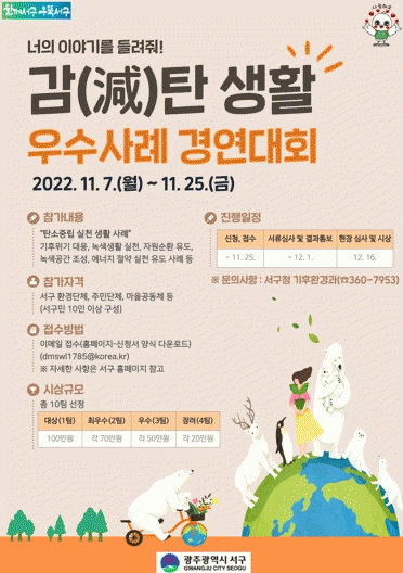 À̹ø °ø¸ð´Â ¼±¸ ȯ°æ´Üü, ÁֹδÜü, ÁֹΠ10ÀÎÀÌ»ó ¸¶À»°øµ¿Ã¼ µîÀ» ´ë»óÀ¸·Î ¿¡³ÊÁö Àý¾à, ÀÚ¿ø¼øÈ¯ À¯µµ, ³ì»ö»ýȰ ½Çõ µî ź¼ÒÁ߸³ ½ÇõÀ» À¯µµÇÏ°í ¹®ÈÈ®»ê¿¡ ±â¿©ÇÑ »ç·Ê¸¦ Á¢¼ö¹Þ´Â´Ù.