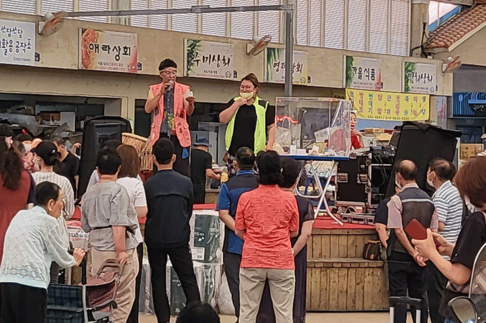 °ÁøÀ¾½ÃÀå»óÀÎȸ°¡ ÁÖ°üÇÏ´Â À̹ø Çà»ç´Â °ÁøÀ¾½ÃÀåÀÌ »ì¾Æ¾ß Áö¿ª°æÁ¦°¡ »ì¾Æ³´Ù´Â ÃëÁö ¾Æ·¡ ÀαⰡ¼ö ¹Ú±º ÃÊû °ø¿¬°ú ³Å¸, °¢¼³ÀÌ µî Èï°Ü¿î ¹«´ë¿Í 5¸¸ ¿ø »ó´çÀÇ ½ÃÀå ¹°Ç° ±³È¯±Ç Ãß÷ µî ´Ù¾çÇÑ À̺¥Æ®·Î ±¸¼ºµÆ´Ù.