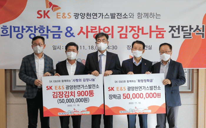 Àü´Þ½Ä¿¡´Â Á¤ÀÎÈ ±¤¾ç½ÃÀå, ·ù¹üÈñ SK E&S Àü·Â»ç¾÷ ºÎ¹®Àå, ±èÀç°æ ±¤¾ç½Ã»ç¶û³ª´®º¹ÁöÀç´ÜÀÌ»çÀå µî °ü°èÀÚµéÀÌ Âü¼®ÇÑ °¡¿îµ¥, Áö¿ª ³» Àú¼Òµæ ÇѺθð°¡Á¤ ÀÚ³àµéÀÇ ¾ÈÁ¤ÀûÀÎ ¼ºÀåÀ» À§ÇØ ÃÑ 109¸í(ÃʵîÇлý 44, ÁßÇлý 31, °íµîÇлý 34)ÀÇ Çлýµé¿¡°Ô 5õ¸¸ ¿øÀÇ ÀåÇбÝÀ» Áö±ÞÇϱâ·Î Çß´Ù.
