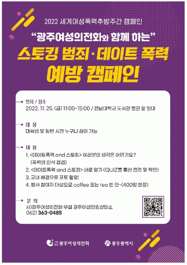 ¸ÕÀú, 25ÀÏ¿¡´Â Àü³²´ëÇб³ µµ¼°ü º°°ü ¾Õ¿¡¼ ½Ã¹ÎµéÀ» ´ë»óÀ¸·Î ¡®µ¥ÀÌÆ®Æø·Â, ½ºÅäÅ· µî ½ÅÁ¾ Á¨´õÆø·Â ¹Ù·Î¾Ë±â¡¯ Ä·ÆäÀÎÀ» ¿°í ¡ãµ¥ÀÌÆ®Æø·Â°ú ½ºÅäÅ· ¹üÁË ÀÎ½Ä Á¡°Ë ¡ã½ºÅäÅ· °ü·Ã ¹ý·ü °³Á¤¾È ¹Ù·Î¾Ë±â ÄûÁî ¡ãÁ¨´õÆø·Â ÇÇÇØÀÚ Áö¿ø ±â°ü È«º¸ µîÀ» ÆîÄ£´Ù.