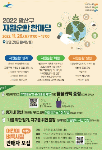 ±¤»ê±¸ ¾î¸°À̵éÀÌ Áß°í¹°Ç°À» ÆÈ°í ±³È¯ÇÏ´Â º·èÀåÅÍ, °æ¾Ï±Ù¸°°ø¿ø ÀÏ¿øÀ» °ÉÀ¸¸ç ¾²·¹±âµµ ÁÝ´Â ¡®Áݱë(Áݱâ+Á¶±ë)¡¯ Ȱµ¿µµ ÁøÇàÇÑ´Ù. ÁݱëÀº ½Ã¹Î ´©±¸³ª Âü¿©°¡ °¡´ÉÇϸç, Âü¿©ÀÚ¿¡°Ô´Â ºÀ»ç ½Ã°£À» ºÎ¿©ÇÑ´Ù.