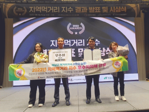 ÇØ³²±ºÀÌ ³ó¸²Ãà»ê½ÄǰºÎ¿Í Çѱ¹³ó¼ö»ê½ÄǰÀ¯Åë°ø»ç°¡ ÁÖ°üÇÑ 2022³â Áö¿ª¸Ô°Å¸® Áö¼ö ¿ì¼öÁöÀÚü ½Ã»ó½Ä¿¡¼ ¿ì¼öÁöÀÚü»óÀ» ¼ö»óÇß´Ù.