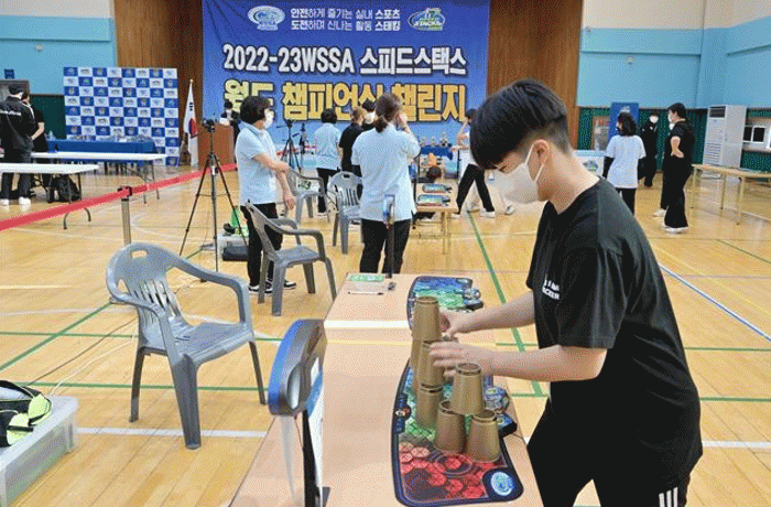 ½ºÆ÷Ã÷ ½ºÅÂÅ·(sports stacking, ÄŽױâ)Àº 12°³ÀÇ ½ºÇǵ彺Åýº ÄÅÀ» ´Ù¾çÇÑ ¹æ¹ýÀ¸·Î ½×°í ³»¸®¸é¼ ÁýÁ߷°ú ¼ø¹ß·ÂÀ» ±â¸£´Â ±â¼ú°ú ½ºÇǵ带 °Ü·ç´Â ½ºÆ÷Ã÷ °æ±â·Î¼ 1980³â´ë ÃʹÝ, ¹Ì±¹ ͏®Æ÷´Ï¾Æ¿¡¼ ½ÃÀÛµÇ¾î ±¹³»¿¡¼µµ ´ëÁß ½ºÆ÷Ã÷·Î ÀÚ¸®Àâ°í ÀÖ´Ù.