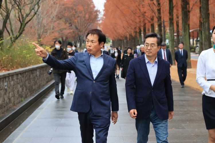 ÇÑÆí ±èµ¿¿¬ µµÁö»ç ÀÏÇàÀº °¿¬À» ÀüÈÄÇØ Çг»¿¡ Á¶¼ºµÈ ¡®¹ÎÁֱ桯À» µÑ·¯º¸°í, Àü³²´ëÇб³ÀÇ ¹ÎÁÖȿ ¿ª»ç¿¡ ±íÀº °æÀǸ¦ Ç¥Çß´Ù.
