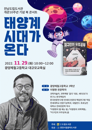 À̹ø ºÏ ÄܼƮ´Â ±¤¾çÁ¦Ã¶°íµîÇб³¿¡¼ ¼ö´ÉÀÌ ³¡³ °íµîÇб³ 3Çгâ ÇлýÀ» ´ë»óÀ¸·Î ¡®Å¾ç°è ½Ã´ë°¡ ¿Â´Ù¡¯¶ó´Â ÁÖÁ¦·Î ¿î¿µµÇ¸ç, °¿¬Àº õ¹®ÇÐÀÚÀÌÀÚ °úÇÐÀú¼ú°¡ÀÎ À̸íÇö ¹Ú»ç°¡ ¸ÃÀ» ¿¹Á¤ÀÌ´Ù.