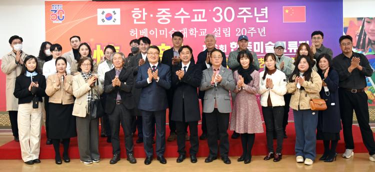 ÇÑ¡¤Áß ¼ö±³ 30ÁÖ³âÀ» ±â³äÇÏ¿© ÇÑ¡¤Áß ¾ç±¹ °£ ¹®È¿¹¼ú ±³·ù ÃËÁø°ú ¹ßÀüÀ» À§ÇØ °øÀÚ¾ÆÄ«µ¥¹Ì 1Ãþ ´Ù¸ñÀûȦ¿¡¼ °³ÃÖµÈ À̳¯ °³¸·½Ä¿¡´Â ¹Ú»óö È£³²´ëÇб³ ÃÑÀå°ú Áß±¹Ç㺣À̹̼ú´ëÇб³ Á¶Çü¿¹¼ú´ëÇÐ Áö¾Ó¾Å´Ù(Ë©兴达) ¿øÀå ¹× ¾ç±³ÀÇ Ãâǰ ±³¼öµéÀÌ ÇÔ²² Âü¼®Çß´Ù.
