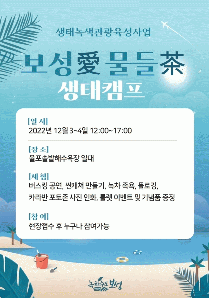 ¶ÇÇÑ, ÇÇÅ©´Ð Àåºñ¸¦ ÇöÀå¿¡¼ ´ë¿©Çϸé À²Æ÷ÇØº¯ÀÇ °æÄ¡¸¦ Áö¿ª¹ÎÀÌ ¸¸µç ƼǪµå(Tea-Food)¸¦ ¸ÔÀ¸¸ç °¨»óÇÒ ¼öµµ ÀÖ´Ù. À²Æ÷ ÇØº¯ Ç÷αë(Plogging, ÇØº¯À» °Å´Ò¸ç ¾²·¹±â¸¦ Áݴ Ȱµ¿)À¸·Î ¹Ù´Ù ¾²·¹±â¸¦ ¸ð¾Æ¿À¸é º¸¼º±º ±â³äǰÀ» ÁõÁ¤ ÇÒ ¿¹Á¤ÀÌ´Ù.