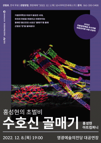À̹ø ÀÛǰÀº 2022 ÀüÅë°ø¿¬¿¹¼ú ¿ì¼öÀÛǰ Àç°ø¿¬Áö¿ø »ç¾÷ ¼±Á¤ÀÛÀ¸·Î ±â¿ø°ú Ä¡À¯, īŸ¸£½Ã½º°¡ ÇÊ¿äÇÑ Çö´ë½Ã´ë, ¿ì¸®ÀÇ ¸¶À½À» À§·ÎÇÏ°í ¾î·ç¸¸Áö´Â¡®¼öÈ£½Å °ñ¸Å±â¡¯¸¦ À½¾ÇÀ¸·Î ´ã¾ÒÀ¸¸ç Ä¡À¯ÀÇ ÈûÀ» Áö´Ñ µ¿ÇØ¾È ¹«¾ÇÀ» »õ·Ó°Ô ÇØ¼®Çß´Ù.