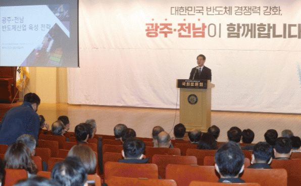 °³È¸»ç¿¡¼ °±âÁ¤ ½ÃÀåÀº ¡°¹ÝµµÃ¼ ƯȴÜÁö À¯Ä¡¸¦ À§ÇÑ ÃÑ·ÂÀüÀÌ ÆîÃÄÁö°í ÀÖÁö¸¸ ±¤¿ªÀÚÄ¡´Üü °£ Çù·ÂÇØ ÃßÁøÇÏ´Â °÷Àº ±¤ÁÖ.Àü³²ÀÌ À¯ÀÏÇÏ´Ù¡±¸ç ¡°¿ì¸®°¡ °¡Áø °Á¡À» Ȱ¿ëÇØ ¹Ýµå½Ã ¼º°ø½ÃÄÑ ´ëÇѹα¹ ¹ÝµµÃ¼»ê¾÷ °æÀï·ÂÀ» ±¤ÁÖ¡¤Àü³²ÀÌ ¼±µµÇÏ´Â ÇÑÆí, Áö¿ª±ÕÇü¹ßÀüÀÇ ±Ù°ÅÁö°¡ µÇµµ·Ï ÃÖ¼±À» ´ÙÇϰڴ١±°í ¸»Çß´Ù.