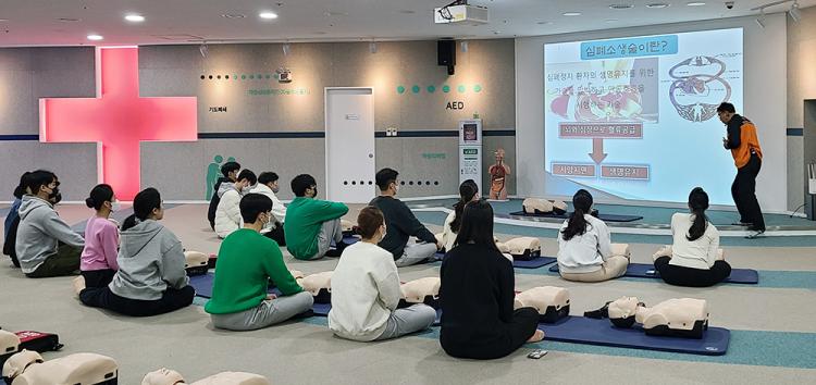 À̳¯ Çà»ç¿¡¼´Â Çѱ¹°øÇ×°ø»çÀÇ Ãë¾÷Á¤º¸¿Í Á÷¹«Å½»ö ±×¸®°í °øÇ×À» µÑ·¯º¸¸ç ¾ÈÀü°ú º¸¾È¾÷¹«¿¡ ´ëÇØ ¾Ë¾Æº¸¾ÒÀ¸¸ç, ºû°¡¶÷¾ÈÀüüÇè°ü¿¡¼ CPR ±³À° ¹× ÈÀ翹¹æ ±³À°À» À̼öÇß´Ù. ÇлýµéÀº ÀÀ±Þ»óȲ¿¡ ´ëºñÇÑ CPR°ú ÀÚµ¿½ÉÀåÃæ°Ý±â¸¦ Ȱ¿ë ½Ç½À°ú ÈÀç ¹ß»ý½Ã ¿Ï°±â¸¦ »ç¿ëÇÑ Å»Ãâ»óȲ¿¡ Âü¿©Çß´Ù.