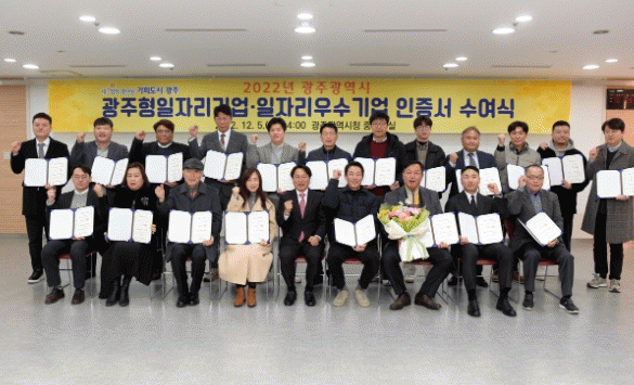 ¸ÕÀú ¡®±¤ÁÖÇüÀÏÀÚ¸®±â¾÷ ÀÎÁõ¡¯ »ç¾÷Àº ÀûÁ¤ÀÓ±Ý, ÀûÁ¤³ëµ¿½Ã°£, ³ë»çÃ¥ÀӰ濵, ¿ø¡¤ÇÏû°ü°è °³¼± µî¿¡¼ ¿ì¼öÇÑ ¼ºÀûÀ» °ÅµÐ ±â¾÷À» ¹ß±¼¡¤À°¼ºÇÏ´Â ½ÃÃ¥ÀÌ´Ù. 2018³â ½ÃÀÛÇßÀ¸¸ç ÃÑ 22°³ ±â¾÷ÀÌ ±¤ÁÖÇüÀÏÀÚ¸®±â¾÷ ÀÎÁõÀ» ¹Þ¾Ò´Ù.