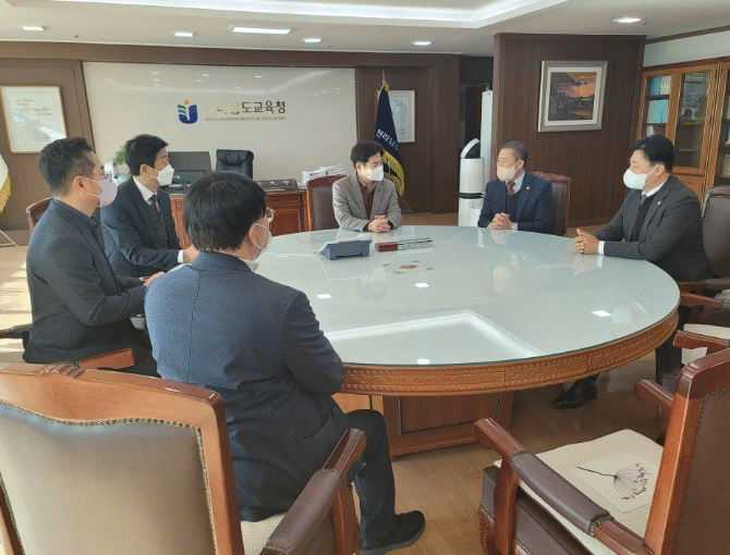 Áö³ 2ÀÏ ¿ÀÈÄ µÎ ÀÇ¿øÀº Àü¶ó³²µµ±³À°Ã»À» ã¾Æ ±è´ëÁß ±³À°°¨°ú ¸é´ã ½Ã°£À» °¡Á³´Ù. ÀÌ ÀÚ¸®¿¡¼ ÇöÀç ¿Ïµµ±º ÃÊ¡¤Áß¡¤°íµîÇб³ÀÇ ¿¾ÇÇÑ ±³À°È¯°æ¿¡ ´ëÇØ ¼³¸íÇϰí ÇлýµéÀÇ ½Ä¼ö ¹®Á¦, µµ¼Áö¿ª ±³»çÀÇ °ü»ç Áõ¼³, °ø°øµµ¼°ü ½Å¼³, Æó±³¿¡ µû¸¥ Çб³¿Í ºÎÁöÀÇ ÁֹΠ¿ì¼±±Ç ¹èÁ¤, Çб³ ¿îµ¿Àå ¶óÀÌÆ® ½Ã¼³ µî ¿ì¸®±º ±³À° Çö¾È¿¡ ´ëÇÏ¿© ¼³¸íÇß´Ù. ƯÈ÷ °¡¹³ÀÌ ±æ¾îÁú °æ¿ì ³»³â 3¿ù °³ÇÐ ½Ã±â¿¡ ÇлçÀÏÁ¤°ú ÇлýµéÀÇ ¾î·Á¿òÀÌ °¡ÁßµÉ °ÍÀ¸·Î ¿¹»óµÇ¾î ÀÌ¿¡ ´ëÇÑ ´ëºñÃ¥µµ °ÇÀÇÇß´Ù.