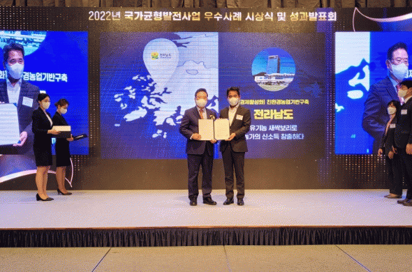 °È¿¼® Àü³²µµ ³óÃà»ê½Äǰ±¹ÀåÀº ¡°Ä£È¯°æ³ó¾÷ ±â¹Ý±¸ÃàÀ» À§ÇØ ³ë·ÂÇÑ Àü³²µµ¿Í ¿µ±¤±ºÀ» ºñ·ÔÇÑ ¸¹Àº °ü°è ±â°üÀÌ Çù·ÂÇØ ±ÕÇü¹ßÀü ¿ì¼ö»ç·Ê¿¡ ¼±Á¤µÆ´Ù¡±¸ç ¡°¾ÕÀ¸·Îµµ ³ó¾÷ÀÎÀÇ Âü¿©¸¦ ¹ÙÅÁÀ¸·Î ÇÑ ´Ù¾çÇÑ »ç¾÷ ¹ß±¼À» ÅëÇØ Áö¿ª±ÕÇü¹ßÀü°ú ³ó¾÷ÀÎ ¼ÒµæÃ¢ÃâÀ» À̲ø°Ú´Ù¡±°í ¸»Çß´Ù.
