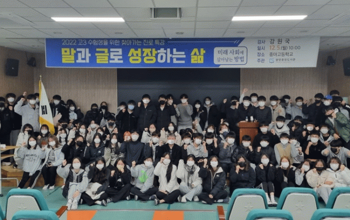 °¿ø±¹ ÀÛ°¡´Â Á߸¶°í, ±¤¾ç°í 270¿© ¸íÀÇ Çлý¿¡°Ô ¡®¸»°ú ±Û·Î ¼ºÀåÇÏ´Â »î¡¯À» ÁÖÁ¦·Î ¡®¸»Çϱâ¿Í ¾²±â¡¯ÀÇ Á߿伺À» Àü´ÞÇß´Ù.