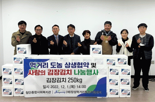 À̳¯ (Àç)À强¸Ô°Å¸®ÅëÇÕÁö¿ø¼¾ÅÍ¿Í Ã·´Ü»çȸÁ¾ÇÕº¹Áö°üÀº ¡®¸Ô°Å¸® ¾ÈÀü¸Á ±¸ÃàÀ» À§ÇÑ ¾÷¹«Çù¾à¡¯À» ÅëÇØ »ó»ý Çù·ÂÀÇ ¶æÀ» ÇÑ µ¥ ¸ð¾Ò´Ù. Çù¾à½Ä ÀÌÈÄ¿¡´Â ±èÀå ±èÄ¡ 250kgÀ» ±¤ÁÖ Ã·´Ü Áֹο¡°Ô Àü´ÞÇÏ´Â ½Ã°£µµ °¡Á³´Ù.