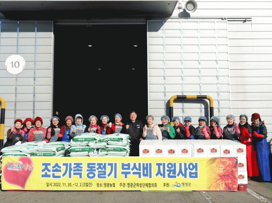 À̹ø ±èÀå±èÄ¡ ³ª´®Àº °Åµ¿ÀÌ ºÒÆíÇÏ¿© ±èÀåÀ» ´ã±×Áö ¸øÇÏ´Â Àú¼Òµæ Á¶¼Õ°¡Á¤°ú ÇѺθ𠰡Á¤À» À§ÇØ ¿µ±¤±º ¿©¼º´ÜüÇùÀÇȸ ȸ¿ø 60¸íÀÌ 3ÀÏ¿¡ ³ª´² Âü¿©ÇÑ °¡¿îµ¥ »ç¶û°ú ¿Â±â¸¦ ´ãÀº ±èÀå±èÄ¡¿Í ½Ò 20kg¸¦ 90¼¼´ë¿¡ Àü´ÞÇß´Ù.