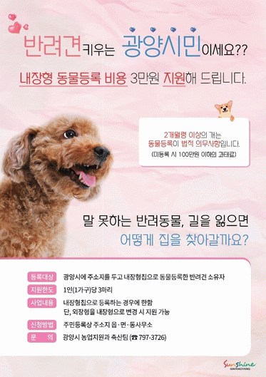 2014³âºÎÅÍ ½ÃÇàµÈ ÇöÇà 'µ¿¹°º¸È£¹ý'¿¡ µû¶ó ¹Ý·Á ¸ñÀûÀ¸·Î ±â¸£´Â 2°³¿ù·É ÀÌ»ó ¹Ý·Á°ßÀº À¾¸éµ¿»ç¹«¼Ò¿¡ ¹æ¹® ½ÅÃ»ÇØ ´ë»óÀÚ·Î È®Á¤¹ÞÀº ÈÄ µî·ÏÇÒ ¼ö ÀÖ´Ù.