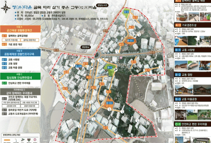 ¶ÇÇÑ °øµ¿Ã¼Àç»ý »ýȰÀÎÇÁ¶ó ±¸ÃàÀ» À§ÇØ ºóÁý°ú À¯ÈÞºÎÁö¸¦ Ȱ¿ëÇÑ ±³µ¿»ç¶û¹æ, 100³â µÈ ¿ì¹°À» Ȱ¿ëÇÑ Á·¿å ½°ÅÍ, ¿µ¾ÏÀ¾¿¡ °¡Àå ¿À·¡µÈ »ó°¡°Ç¹°À» ¸®¸ðµ¨¸µÇÑ ±³µ¿Á¡¹æ°ú ¸¶À»°ø¿ø 3°³¼Ò¸¦ Á¶¼ºÇÏ¿© ÈÞ°Ô°ø°£, ¸¶À»ÁÖÂ÷Àå, ¸¶À»Àü½Ã°ü, ¼Õ´Ô¸ÂÀÌ ½°°ø°£ µîÀ¸·Î Ȱ¿ëÇÒ °èȹÀÌ´Ù.