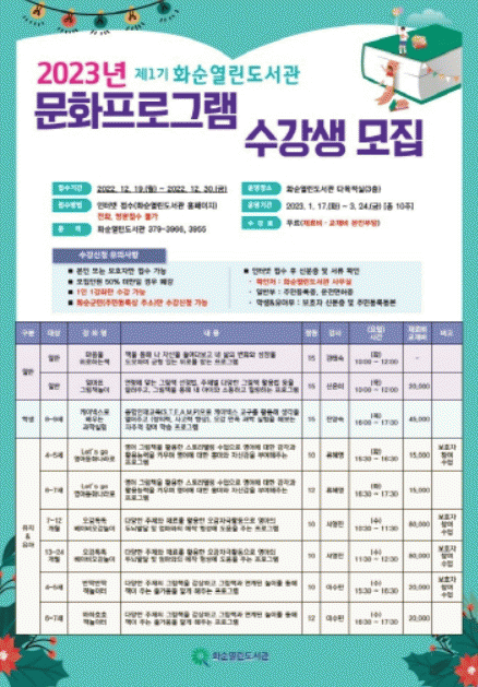 ÀÏ¹Ý ´ë»óÀ¸·Î´Â ¡®¸¶À½À» À§·ÎÇϴ å¡¯, ¡®¾ö¸¶Ç¥ ±×¸²Ã¥³îÀÌ¡¯ ÇÁ·Î±×·¥À», ÃʵîÇб³ 1~2Çг⠴ë»óÀ¸·Î´Â ¡®ÄÉÀ̳ؽº·Î ¹è¿ì´Â °úÇнÇÇ衯 ÇÁ·Î±×·¥À», À¯¾Æ ´ë»óÀ¸·Î´Â ¡®¿À°¨ÅåÅå º£À̺ñ¿À°¨³îÀÌ¡¯, ¡®Let¡¯s go ¿µ¾îµ¿È³ª¶ó·Î¡¯, ¡®¹Ý¦¹Ý¦ Ã¥³îÀÌÅÍ¡¯ ÇÁ·Î±×·¥ µî 3°³ ºÎ¹® 9°³ °Á ÃÑ 109¸íÀ» ¸ðÁýÇÑ´Ù.