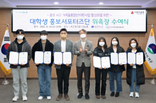 ¼Æ÷ÅÍÁî´ÜÀº Àü³²´ëÇб³, Á¶¼±´ëÇб³ µî ±¤ÁÖ ¼ÒÀç ´ëÇб³ ÀçÇлý À§ÁÖ·Î À§Ã˵ÆÀ¸¸ç ÇâÈÄ °¡Á·µ¹º½Ã»³â Áö¿ø»ç¾÷ °ü·Ã ÄÜÅÙÃ÷¸¦ Á¦ÀÛÇϰí ÀνºÅ¸±×·¥ µî SNS¿¡ °ü·Ã °Ô½Ã¹°À» ¾÷·ÎµåÇØ û³âµéÀ» ´ë»óÀ¸·Î »ç¾÷ È«º¸¸¦ ½Ç½ÃÇÒ ¿¹Á¤ÀÌ´Ù. ¶ÇÇÑ, »ç¾÷ È«º¸ Àü·« ¼ö¸³ ¹× ½ÇÀû °øÀ¯¸¦ À§ÇÑ ¿Â¶óÀΠȸÀǵµ º´ÇàÇÑ´Ù.