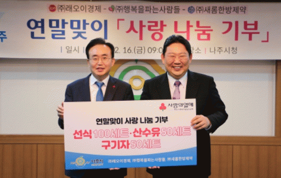 À̰æÁ¦ ¿øÀåÀº ¡°¿¬¸»¿¬½Ã °Ç°Á¦Ç° ³ª´®À» ÅëÇØ ³ªÁÖ½Ã¿Í Àο¬À» ¸Î°ÔµÅ ±â»Ú´Ù¡±¶ó¸ç ¡°µµ¿òÀÌ ÇÊ¿äÇÑ ºÐµé¿¡°Ô °Ç° ÁõÁø°ú À§·ÎÀÇ ¼±¹°ÀÌ µÇ±æ ¹Ù¶õ´Ù¡±¶ó°í ±âŹ ¼Ò°¨À» ÀüÇß´Ù.