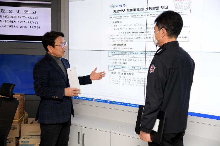 °±âÁ¤ ±¤ÁÖ½ÃÀåÀº ¡°21ÀϺÎÅÍ ÁÖ¸»±îÁö ¶Ç ´Ù½Ã ´«°ú ÃßÀ§°¡ ¿Â´Ù°í ¿¹º¸µÆ´Ù. ÇÇÇØ°¡ ¹ß»ýÇÏÁö ¾Êµµ·Ï °¢º°È÷ À¯ÀÇÇØ´Þ¶ó¡±°í ´çºÎÇß´Ù.