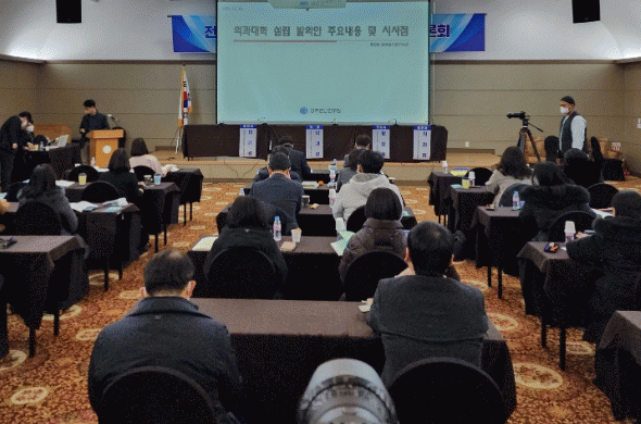 Ȳ¼º¿õ ±¤ÁÖÀü³²¿¬±¸¿ø À§¿øÀº ÀÇ´ë¿Í °ü·ÃÇØ ÀÔ¹ý ¹ßÀÇµÈ 11°ÇÀÇ ¹ý¾È ÁÖ¿ä ³»¿ëÀ» ºÐ¼®ÇØ ½Ã»çÁ¡À» Á¦½ÃÇß´Ù. ³²Àº°æ °æÁ¦Á¤ÀǽÇõ½Ã¹Î¿¬ÇÕ ±¹ÀåÀº ¿ì¸®³ª¶ó ÀÇ·á Çö½Ç°ú °³¼± ¹æ¾È ¹ßÇ¥¸¦ ÅëÇØ Áö¿ªº° ÀÇ·á°ÝÂ÷ ÇØ¼Ò¸¦ À§ÇÑ Á¤Ã¥ ´ë¾ÈÀ¸·Î ÀÇ´ë Á¤¿ø È®´ë¿Í Àü³² µî ÀÇ´ë°¡ ¾ø´Â Áö¿ª¿¡ Àǰú´ëÇÐ ¼³¸³À» °Á¶Çß´Ù. ÀÌÁ¤¹Ì Àü³²µµ°ø°øº¸°ÇÀÇ·áÁö¿ø´ÜÀåÀº Àü³²ÀÇ °ø°øÀÇ·á Çö½Ç°ú ´ë¾ÈÀ» ¹ßÇ¥Çß´Ù.
