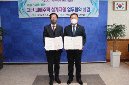 À̹ø ¾÷¹«Çù¾àÀº ¹«¾ÈÁö¿ª °ÇÃà»ç·Î ±¸¼ºµÈ ¹«¾È°ÇÃà»çÇùȸ ȸ¿øµéÀÇ Àç´É±âºÎ¸¦ ÅëÇØ °¢Á¾ Àç³, ÀçÇØ·Î ÀÎÇØ ÁÖÅà ÇÇÇØ ¹ß»ý ½Ã ½Å¼ÓÇÑ º¹±¸¿Í ÇÇÇØ ÁÖ¹ÎÀÇ ÁְžÈÁ¤À» µµ¸ðÇϰíÀÚ ±âȹ´Ü°è¿¡¼ºÎÅÍ ¸ÂÃãÇü ÄÁ¼³ÆÃÀ» ÅëÇØ ¼³°è, Âø°ø, »ç¿ë½ÂÀαîÁö Àϰý Áö¿øÇÏ´Â ³»¿ëÀ¸·Î ÇàÁ¤Ã³¸® ±â°£ ¶ÇÇÑ ÃÖ´ëÇÑ ´ÜÃàÇÒ °èȹÀÌ´Ù.