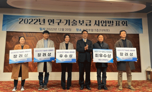 ÃÑ 8°ÇÀ» ¹ßÇ¥ÇÑ ¿¬±¸.±â¼úº¸±Þ »ç¾÷¹ßǥȸ¿¡¼ Àü³²Çؾç¼ö»ê°úÇпø °íÈïÁö¿øÀº ¡®¼øÈ¯¿©°ú½Ã½ºÅÛÀ» ÀÌ¿ëÇÑ ¹Ù¸®°ú ¾î·ù ¿¬Áß »ý»ê ¾ç½Ä ±â¼ú°³¹ß¡¯À» ¹ßÇ¥ÇØ ÃÖ¿ì¼ö»óÀ» ¹Þ¾Ò´Ù. ¼ö»êÁ¾ÀÚ¿¬±¸¼Ò´Â ¡®À¯¿ë¹Ì»ý¹°À» ÀÌ¿ëÇÑ ¾îÆÐ·ù »ç·áÈ¿À² ¹× ¼öÁúȯ°æ °³¼± ±â¼ú°³¹ß¡¯À» ¹ßÇ¥ÇØ ¿ì¼ö»óÀ» Â÷ÁöÇß´Ù.