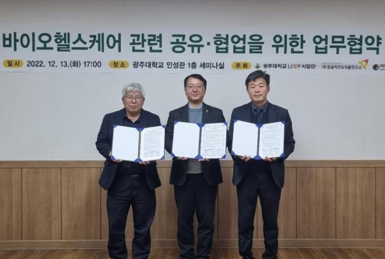 ±¤ÁÖ´ë LINC3.0»ç¾÷´Ü ³ë¼±½Ä ´ÜÀå°ú (Àç)ÀåÈﱺ¹ö¼¸»ê¾÷¿¬±¸¼Ò ¹Ú½Â¹è ¿øÀå, (Àç)ÀÓ½ÇÄ¡Áî¾Ø ½Äǰ¿¬±¸¼Ò Á¤¼®±Ù ¼ÒÀå µî °¢ ±â°ü °ü°èÀÚµéÀÌ Âü¼®ÇØ ¿¸° Çù¾à½ÄÀ» ÅëÇØ ¹ÙÀÌ¿ÀÇコÄÉ¾î ºÐ¾ß »ýŰè Á¶¼ºÀ» À§ÇÑ °øÀ¯¡¤Çù¾÷À» ¾à¼ÓÇß´Ù.