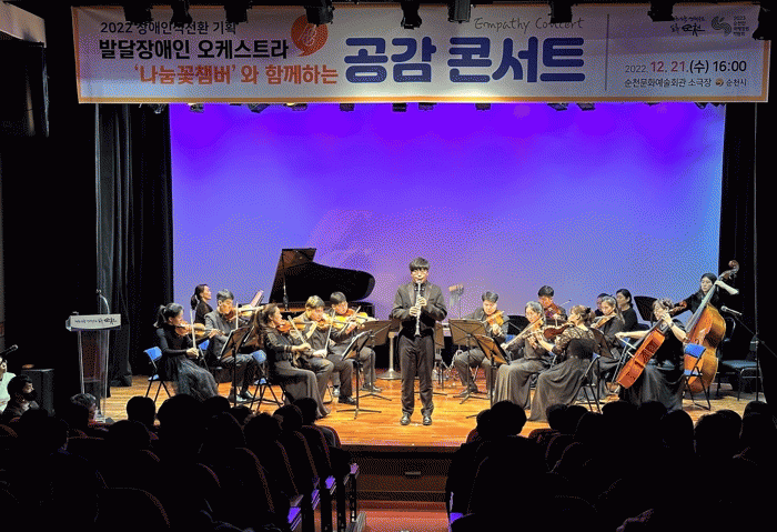 ƯÈ÷ ¼øÃµ½Ã¸³ÇÕâ´Ü°ú ¹ß´ÞÀå¾ÖÀÎ ¿ÀÄɽºÆ®¶ó ´Ü¿øÀÌ ¼ÕÀ» ¸ÂÀâ°í ¡®¹Ù¶÷ÀÌ ¸Ó¹«´Â ³¯¡¯À» ÇÔ²² ºÎ¸¥ ¹«´ë´Â Àå¾Ö¸¦ ³Ñ¾î À½¾ÇÀ¸·Î Çϳª µÇ´Â ¸ð½ÀÀ¸·Î ±íÀº °¨µ¿À» ¼±»çÇß´Ù.