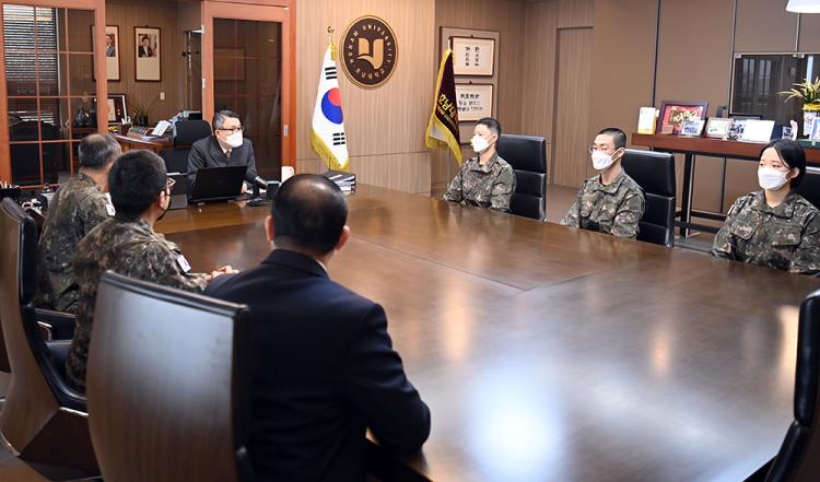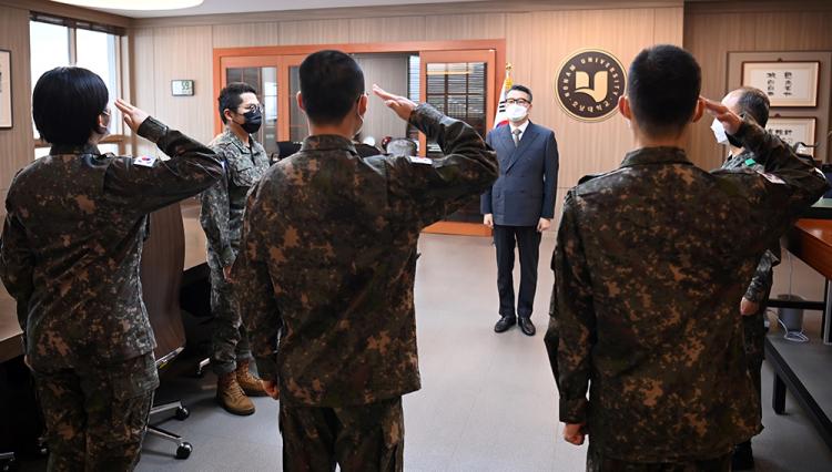 ¹Ú»óö ÃÑÀåÀº ¡°Çб³¿Í Çбº´ÜÀÇ ¹ßÀüÀ» À§ÇÏ¿© ÈÆ·ÃÀÌ ³¡³ ÈÄ¿¡´Â Àü¿øÀÌ °Ç°ÇÏ°í ¼º¼÷µÈ ¸ð½ÀÀÇ Çбº»ç°ü È帻ýÀÌ µÇ¾î µ¹¾Æ¿Í ÁÙ °Í¡±À» ´çºÎÇß´Ù.
