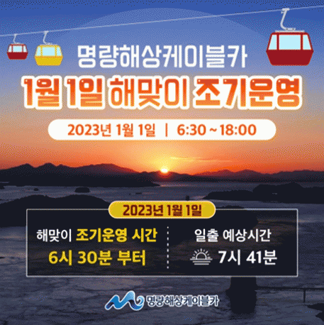 ¿À´Â 1¿ù 1ÀÏ ¿ÀÀü 6½Ã 30ºÐºÎÅÍ ¸í·®ÇØ»óÄÉÀ̺íÄ«¿¡¼´Â ÇØ¸ÂÀÌ Á¶±â ¿î¿µÀ» ÇÑ´Ù°í ¹àÇû´Ù.