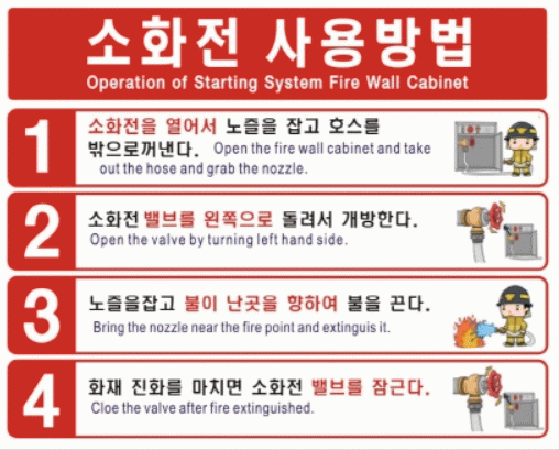 ¼ÒÈÀüÇÔÀ» ¿°í °üâ(³ëÁñ)À» Àâ°í ÀûÀçµÈ È£½º¸¦ ÇÔ ¹ÛÀ¸·Î ²¨³½´Ù. Open the hydrant cabinet and take out the hose and grab the nozzle.