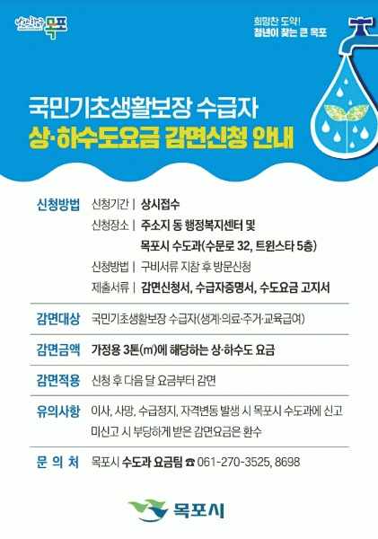 ÇÑÆí ½Ã´Â ¸ñÆ÷½Ã¿¡ °ÅÁÖÇÏ´Â ´ÙÀÚ³à(19¼¼ ÀÌÇÏ ÀÚ³à 3¸í ÀÌ»ó Áֹεî·ÏÀ» µÎ°í °ÅÁÖÇÏ´Â ¼¼´ë) °¡Á¤ÀÌ »ó¡¤Çϼöµµ¿ä±Ý °¨¸éÀ» ½ÅûÇÑ °æ¿ì °¡Á¤¿ë¿¡ ÇÑÇØ »ó¡¤Çϼöµµ¿ä±Ý »ç¿ë·®ÀÇ 15%À» °¨¸éÇϰí ÀÖ´Ù. ½ÅûÀº ¸ñÆ÷½Ã ¼öµµ°ú¸¦ ¹æ¹®Çϰųª ¿ìÆíÀ¸·Î ÇÏ¸é µÈ´Ù.