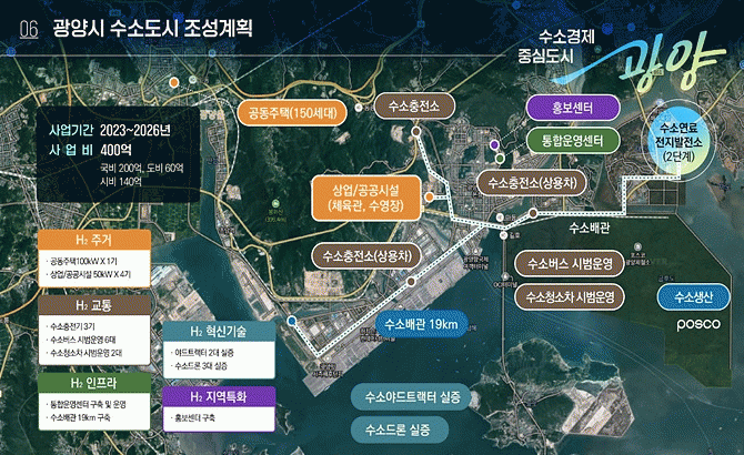 ¼ö¼Ò ÀÎÇÁ¶ó ±¸ÃàÀº Æ÷½ºÄÚ ±¤¾çÁ¦Ã¶¼Ò¿¡¼ »ý»êµÇ´Â ºÎ»ý¼ö¼Ò¸¦ ¼ö¼ÒÃæÀü¼Ò¿Í ¿¬·áÀüÁö ¹ßÀü¼Ò ¹× ±¤¾çÇ׿¡ °ø±ÞÇϱâ À§ÇØ 19km ¼ö¼Ò ¹è°üÀ» ¸Å¼³ÇÒ °èȹÀ̸ç, ¼ö¼Òµµ½Ã Á¶¼º»ç¾÷ ³» ¼ö¼ÒÀÇ »ý»ê¡¤ÀúÀ塤À̼ۡ¤È°¿ë ÇöȲÀ» ½Ç½Ã°£À¸·Î ¸ð´ÏÅ͸µÇÏ´Â ÅëÇտ¼¾ÅÍ, ½Ã¹Î¿¡°Ô ¼ö¼Ò¿¡³ÊÁö¸¦ üÇèÇÏ°í ¾ÈÀü¼º¿¡ ´ëÇØ È«º¸ÇÒ È«º¸¼¾Å͸¦ ±¸ÃàÇÑ´Ù.