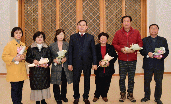 À̳¯ °£´ãȸ´Â °£ºÎ°ø¹«¿ø°ú ¿ÃÇØ¸¦ ¸¶Áö¸·À¸·Î °øÁ÷ÀÚÀÇ ±æÀ» ¸¶¹«¸®ÇÑ ÅðÀÓ¿¹Á¤ÀÚ 17¸í(Á¤³â 11 ¸í¿¹ 2, °ø·Î¿¬¼ö 4)ÀÌ Âü¼®ÇßÀ¸¸ç, ¹ÝÆò»ýÀ» ´ã¾ç±º ¹ßÀüÀ» À§ÇØ ¿Á¤À¸·Î ÇÔ²² ÇØÁֽм±¹è °øÁ÷Àڵ鿡°Ô °í¸¶¿î ¸¶À½À» ÀüÇÏ¸ç ¾Õ³¯À» ÃູÇß´Ù.