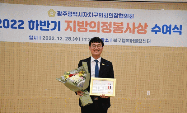 Á¤ ÀÇ¿øÀº Áö¹æÀÇȸ ÀÇ¿øÀ¸·Î¼ ÅõöÇÑ »ç¸í°¨°ú ºÀ»ç Á¤½ÅÀ¸·Î Áö¹æÀÇÁ¤ ¹ßÀü°ú ÁÖ¹ÎÈÇÕÀ» À§ÇØ ±â¿©ÇÑ °øÀ» ÀÎÁ¤¹Þ¾Æ ¼ö»óÀÚ·Î ¼±Á¤µÆ´Ù.