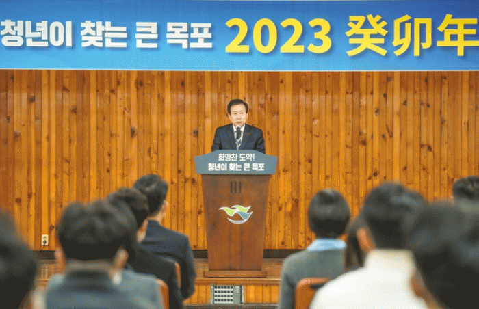 ¹Ú ½ÃÀåÀº ¡°2023³â¿¡´Â ½Ã¹ÎÀ» Á¸ÁßÇÏ°í ¼¶±â´Â ÀÚ¼¼·Î Èñ¸ÁÂù µµ¾àÀÇ »õ ½Ã´ë¸¦ ¿°Ú´Ù. ¸·Èù ±æÀº ¶Õ°í, ¾ø´Â ±æÀº °³Ã´Çϸç ÇÑ °ÉÀ½ ÇÑ °ÉÀ½ ´ç´çÇÏ°Ô ³ª¾Æ°¡°Ú´Ù¡±°í ¹àÇû´Ù.