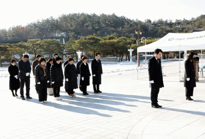 ±èÀç½Ä ÀÇÀåÀ» ºñ·ÔÇÑ µ¿±¸ÀÇȸ Àüü ÀÇ¿ø°ú ÀÇȸ»ç¹«°ú Á÷¿ø 20¿© ¸íÀº ±¹¸³ 5¡¤18¹ÎÁÖ¹¦Áö¸¦ ã¾Æ 5¿ù ¿µ·ÉµéÀÇ ³ÌÀ» ±â¸®°í ±¤ÁÖÀÇ Èñ»ý°ú ¾ÆÇÄ µî 5¡¤18ÀÇ ¼þ°íÇÑ Á¤½ÅÀ» ±â¾ïÇÒ °ÍÀ» ´ÙÁüÇß´Ù.