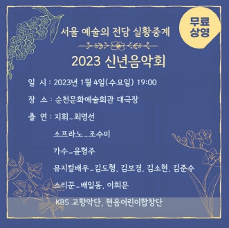 ¼øÃµ¹®È¿¹¼úȸ°ü °ü°èÀÚ´Â ¡°¿¹¼úÀÇÀü´ç °ø¿¬À» ½ÇȲ Áß°èÇÏ´Â À̹ø ½Å³âÀ½¾Çȸ´Â °è¹¦³âÀÇ ÈûÂù Ãâ¹ßÀ» ¿°¿øÇÏ¸ç °¡½¿ ¼Ó¿¡ ¿À·¡µµ·Ï ³²´Â ¾Æ¸§´Ù¿î °ø¿¬ÀÌ µÉ °Í¡±À̶ó¸ç, ¡°Èñ¸Á °¡µæÇÑ ¿¬ÁÖ¿Í ÇÔ²² ÈûÂù ¿¡³ÊÁö¸¦ ¾ò±æ ¹Ù¶õ´Ù.¡±¶ó°í ÀüÇß´Ù.