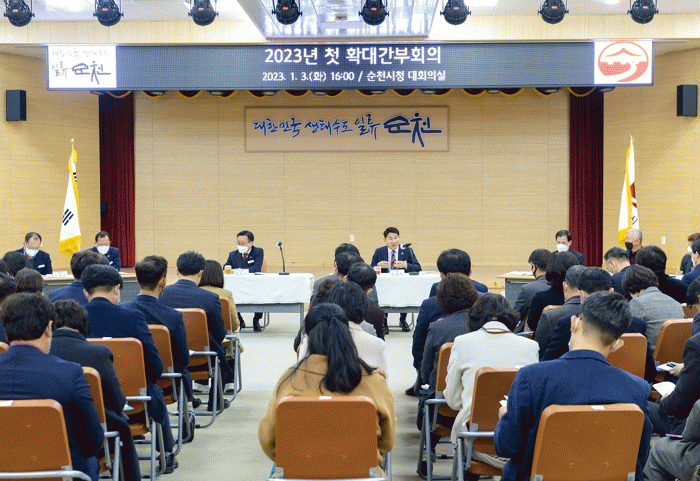 ³ë°ü±Ô ½ÃÀåÀº 2023³âÀº ¹Î¼±8±â ½ÇÁúÀû ¿ø³âÀÌÀÚ ÀÏ·ù ¼øÃµ µµ¾àÀÇ ºÐ±âÁ¡ÀÓÀ» °Á¶Çϸé¼, 2023¼øÃµ¸¸±¹Á¦Á¤¿ø¹Ú¶÷ȸ ¼º°ø¿¡ ¼øÃµÀÇ »õ·Î¿î ¹Ì·¡°¡ ´Þ·ÁÀÖÀ¸¹Ç·Î Á¶Á÷À§¸¦ ºñ·ÔÇÑ ¸ðµç °ø¹«¿øÀÌ Â÷Áú ¾ø´Â ¹Ú¶÷ȸ Áغñ¿¡ ÃÖ¼±À» ´ÙÇØÁÖ±æ ¹Ù¶õ´Ù°í °Á¶Çß´Ù.